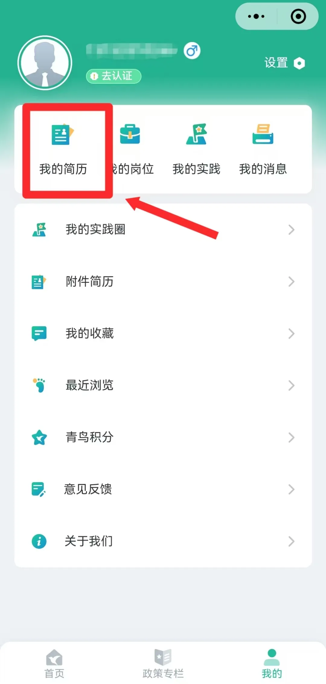 2.点击右下角“我的”,点击“我的简历”,登录完善简历。